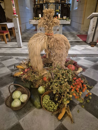 Am 5. Oktober fand bei uns im Dorf wieder das traditionelle Erntedankfest statt. Wetterbedingt mussten wir die Feierlichkeiten in der Pfarrkirche Sirnitz gestalten. Der feierliche Festzug zum evangelischen Bethaus entfiel. Aus diesem Grund wurde der ökumenischer Gottesdienst gefeiert. Zelebriert wurde die heilige Messe von unserem Ortspfarrer Mag. Reinhold Ahrer und dem evangelischen Priester Martin Müller. Wir durften die Messe wieder musikalisch mitgestalten.