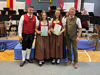 Des Weiteren wurde Sophie-Marie Stark sowie Killian Bucher (der gesundheitsbedingt nicht am Konzert teilnehmen konnnte) für ihre Leistungen bei den Prüfungen zum Junior-Leistungsabzeichen geehrt! Wir haben heuer darüber schon berichtet.